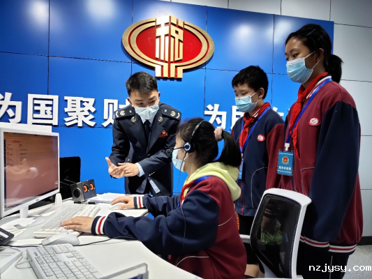 体验活动中,3名七年级学生化身“小小税务体验师”,零距离探索办税缴费服务的“台前幕后”。在税务人员的引导下,“小小税务体验师”走进办税服务厅,详细了解办税服务厅区域设置、主要业务以及“网上办”“掌上办”“自助办”等纳税缴费服务,实地参观税费支持中心、税费直播间,现场体验税务后台审核、咨询服务等办理流程。
